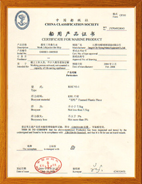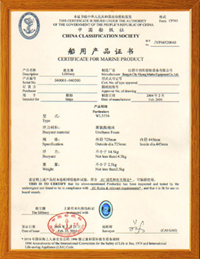 本公司具有完善的計量測試設備,健全的技術質檢體系。救生圈、救生衣、健全的技術質檢體系。公司主要生產救生圈、救生衣、救生燈具、船用配件等系列產品,產品品種齊全、性能符合1974年SOLAS公約,1996年修正案要求,經中國船級社認可。